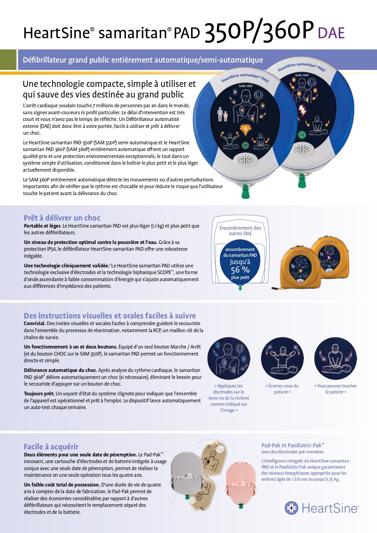 - HeartSine Samaritan PAD 350P Semi-Automatic Cardiac Defibrillator (AED) in French